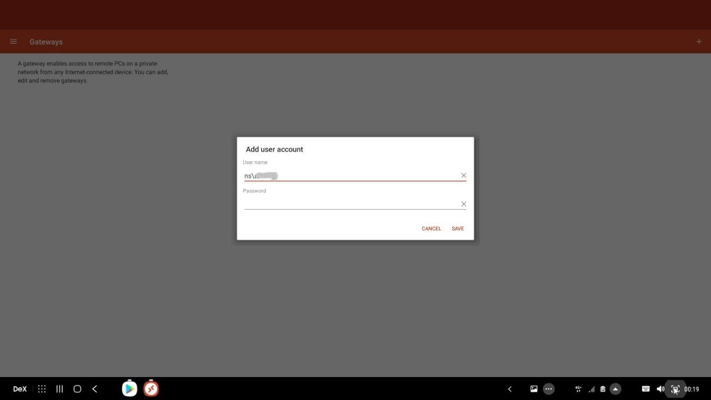 6. In the next dialogue box, under username type ‘ns\xxxxxx’, where xxxxx is your username. Leave the password blank. And click Save.