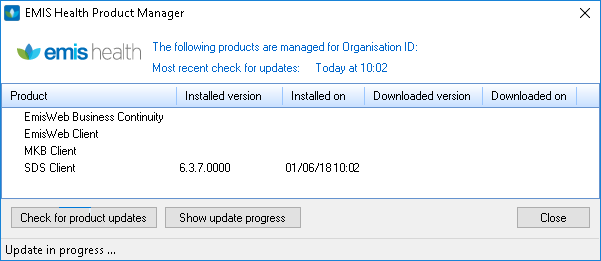 You will be presented with the EMIS Health Product Manger. Click on ‘Check for product updates’ if updated hasn’t already started.