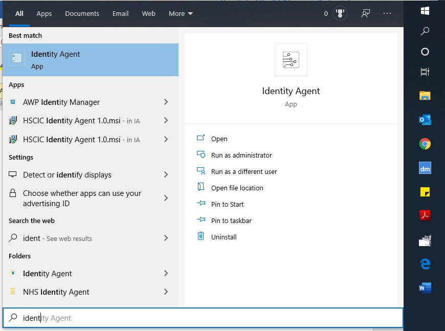 Click the Start button and find the identity agent and run it.